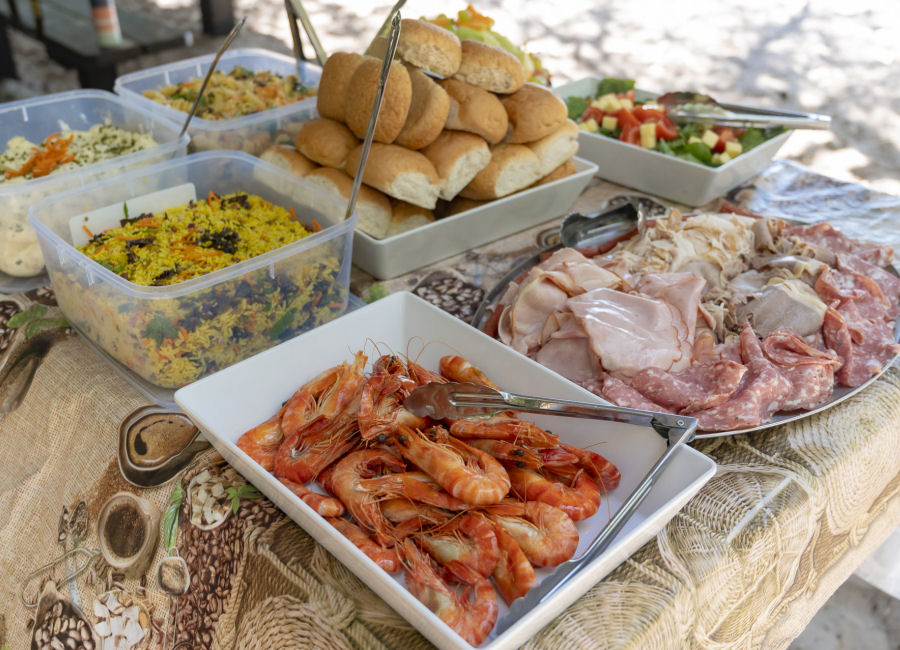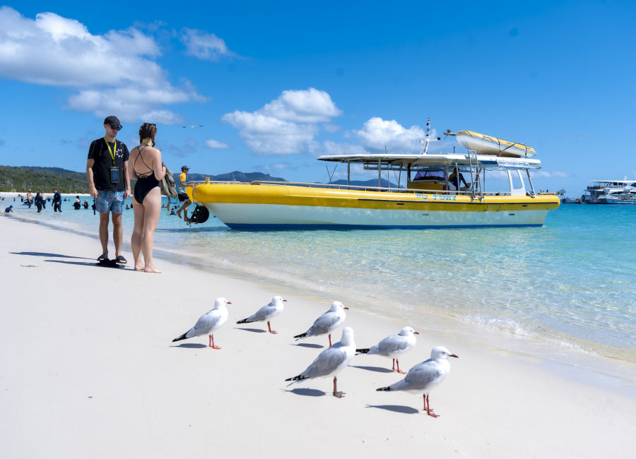 Lunch on Whitehaven Beach is one of the highlights of the cruise, where you will enjoy a variety of freshly prepared salads, prawns, cold meet platter, bread rolls, wraps and fresh fruit platter. A sugar hit of muffins and cookies are served on the way home.