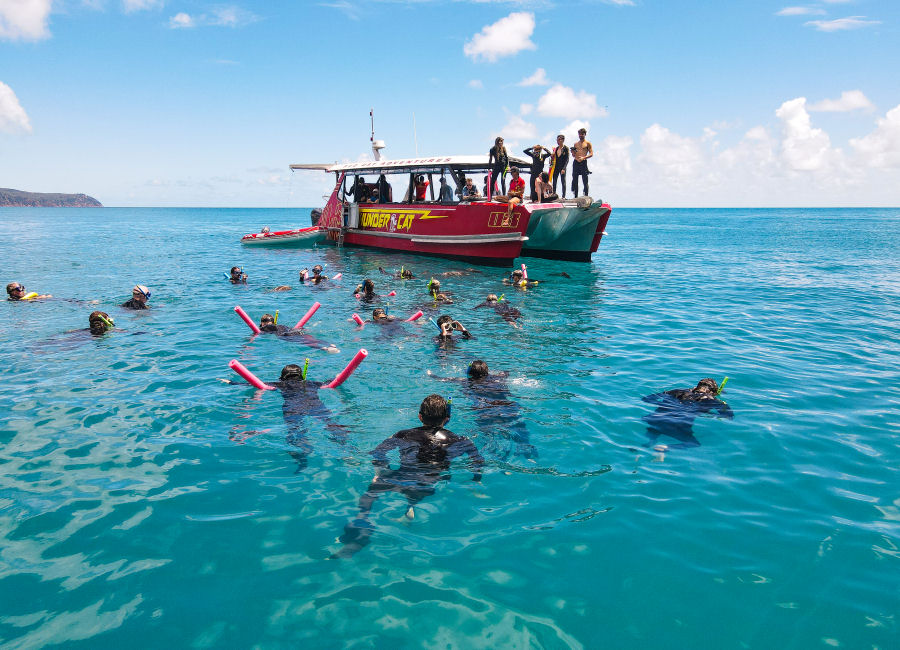 This tour visits the world-famous Whitehaven Beach, Hill Inlet lookout and offers 2 snorkelling opportunities on the fringing Great Barrier Reef. Thundercat is one of the fastest catamaran in the Whitsundays and has been designed for stability and speed so it’s perfect for passengers who are concerned about seasickness. The all-inclusive package departs from Airlie Beach and is suitable for families, couples and groups wanting to experience once in a lifetime moments.