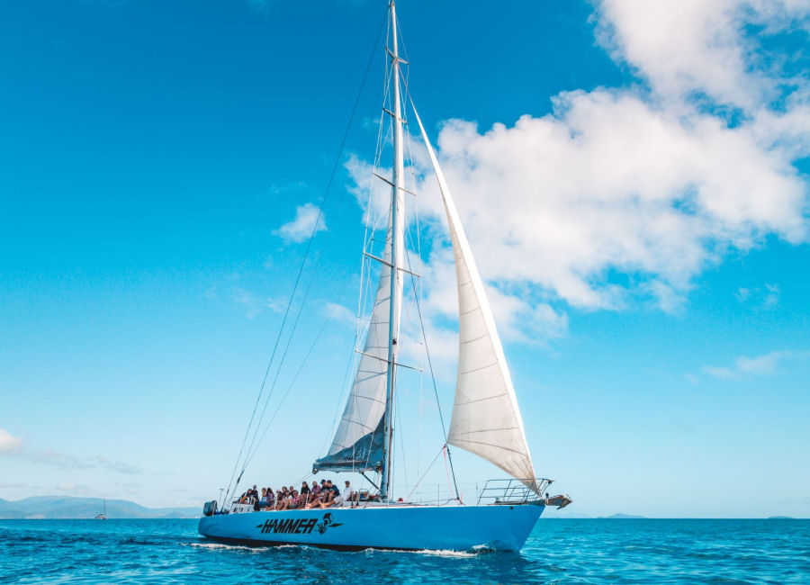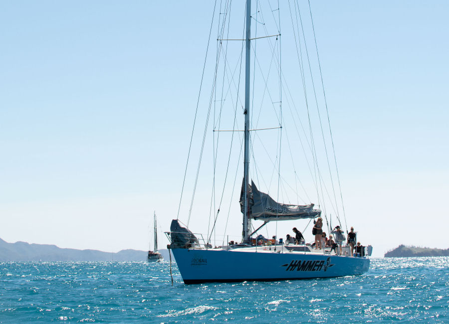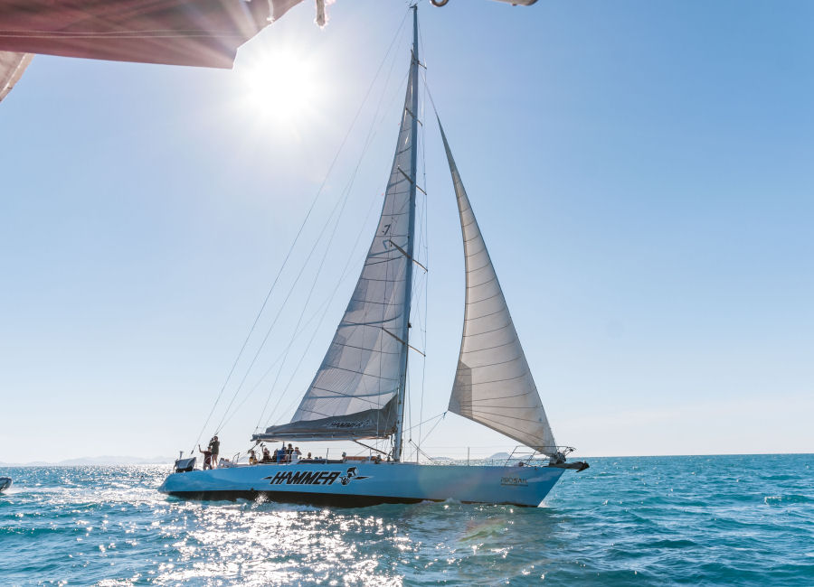 Sailing the Whitsundays on the ultimate MAXI yacht adventure with Hammer Whitsundays! Our crew will whisk you away to the Whitsunday Islands’ must-see spots at thrilling sailing speeds. You’ll soak up the sun on the iconic Whitehaven Beach, take in breathtaking views from Hill Inlet Lookout, and snorkel over some of the planet’s most vibrant reefs. After a day full of excitement, relax and enjoy some evening fun. With Hammer, you’re in for an unforgettable journey, thanks to our cap of 23 guests, spacious decks, and skilled crew eager to deliver an authentic sailing experience. Don’t wait – book your adventure today to explore these stunning islands.