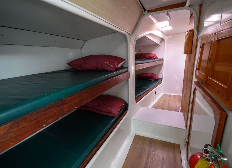 Accommodation is a mix of single and double beds in shared open dormitory style cabins/sections below deck. There are no private rooms